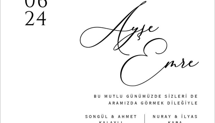 Dernek üyemiz Almanya Konsolosluğu personeli Ahmet KALAYLI’nın kızı Ayşe KALAYLI’nın 29 Haziran 2024 (Cumartesi) saat 13:00’de Ewet’de Weddıng Ostim Mah. 100 Yıl. Bulvarı Ostim Finans ve İş Merkezi Teras Kat 99/1 Ostim Yenimahalle- ANKARA adresinde yapılacak düğününe tüm hemşerilerimiz davetlidir. Dernek yönetim kurulu olarak genç çiftimize mutluluklar dileriz.
